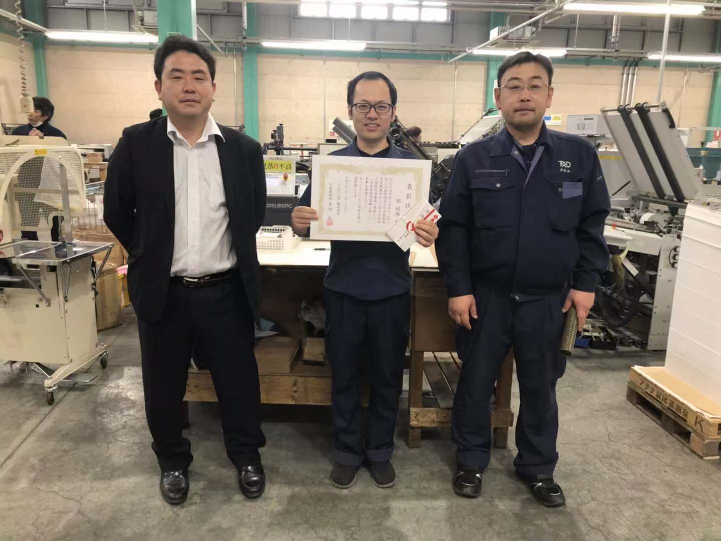 在日本兩名技能實(shí)習(xí)生順利通過(guò)二級(jí)日語(yǔ)考試,受到日方會(huì)社的表彰,與會(huì)社領(lǐng)導(dǎo)合影留念。